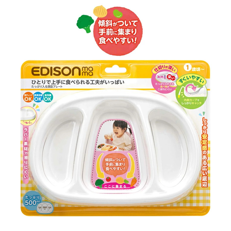 エジソンママ ベビープレート ベビー食器 【深皿プレート】 たっぷり入る ベビー食器 ラバー付き 滑りにくい