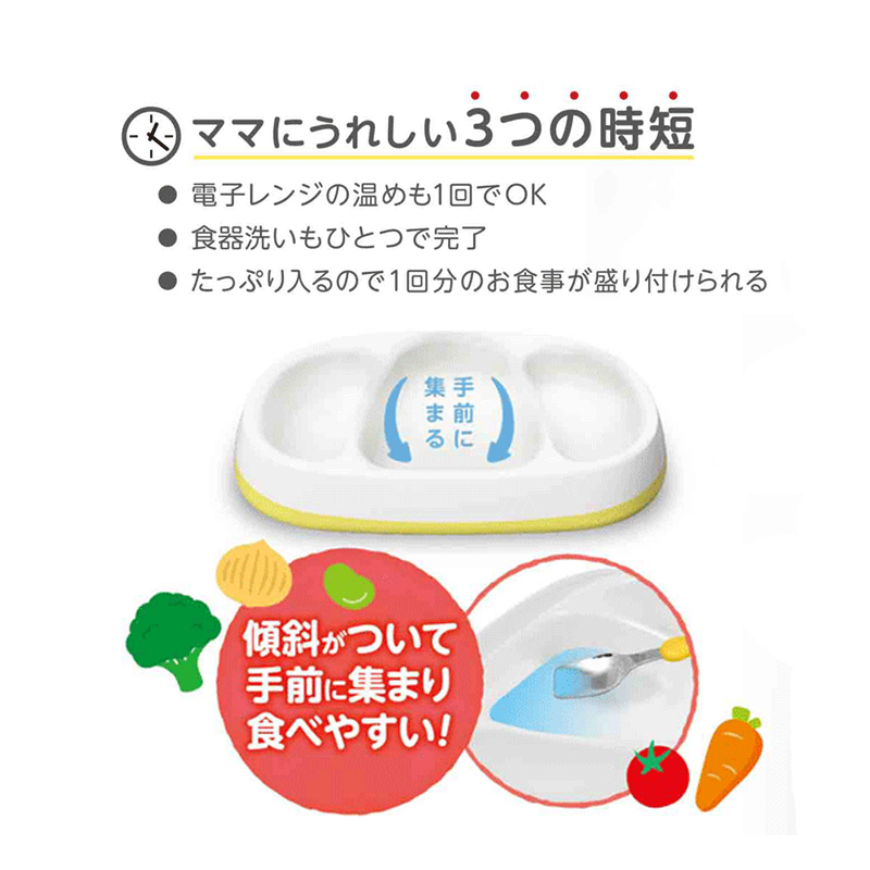 深い仕切りで食べ物がこぼれにくい!
